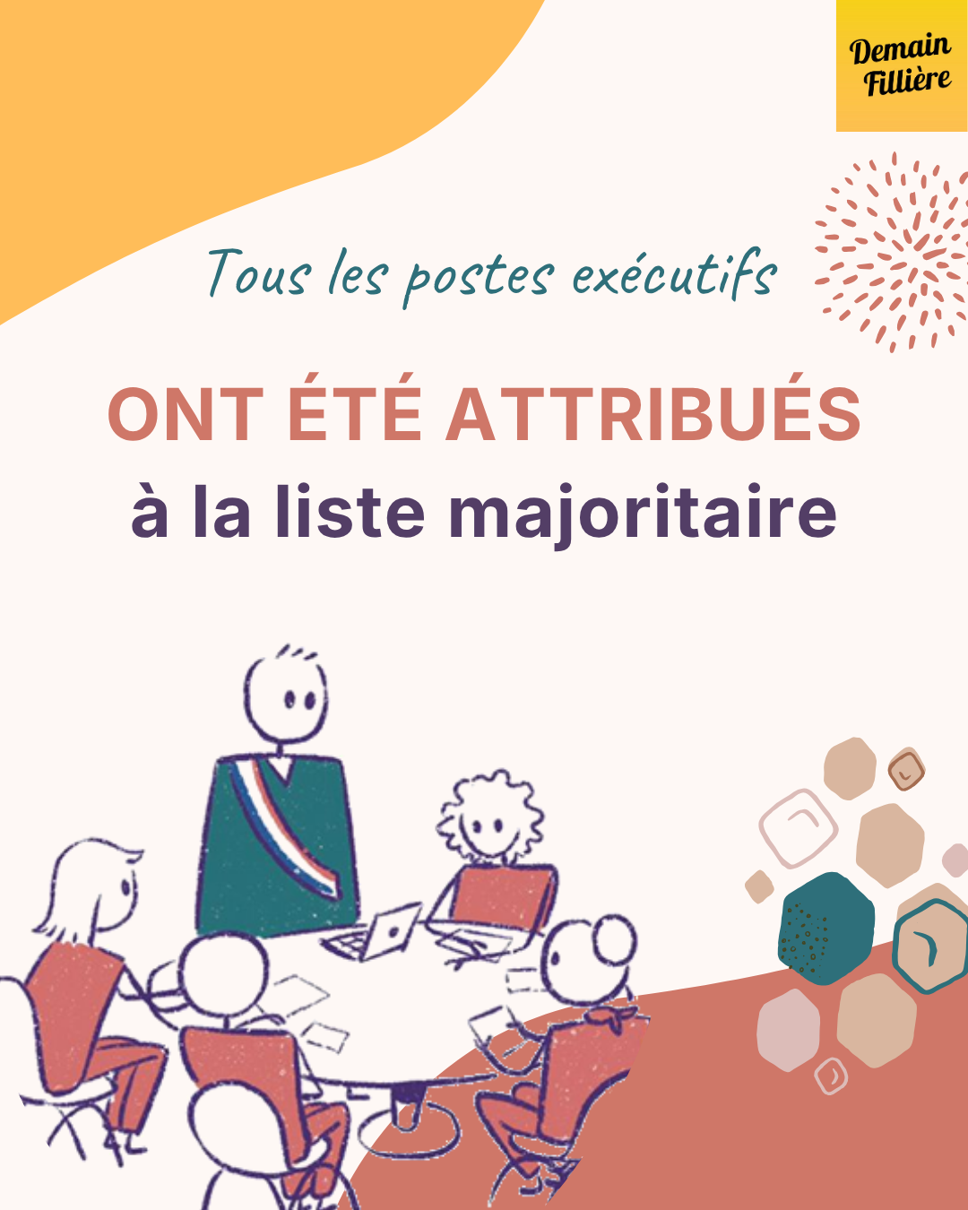 Sans surprise, dans un conseil de 33 élus, dont 25 élus issus de la liste majoritaire et 8 élus issus des 3 listes minoritaires, l’ensemble des postes de l'exécutif a été attribué à la majorité.