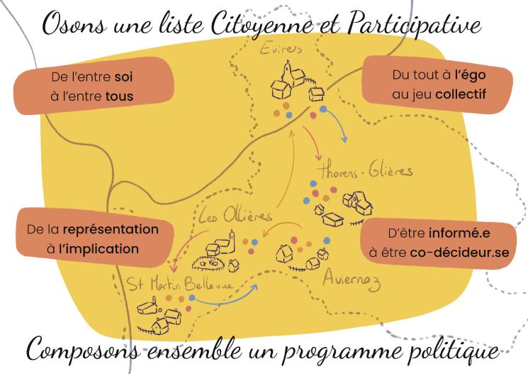 - partager la gouvernance avec les habitants et habitantes de nos villages, tout au long du mandat, dans des espaces de décisions à définir ensemble